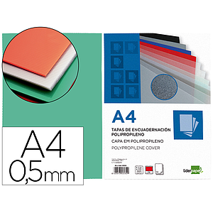 LIDERPAPEL - Tapa encuadernacion polipropileno A4 0.5 mm verde translucido paquete de 100 unidades (Ref. TE28)