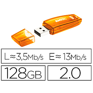 EMTEC - Memoria usb flash c410 128 gb 2.0 naranja (Ref. E144928) (Canon L.P.I. 0,24€ Incluido)