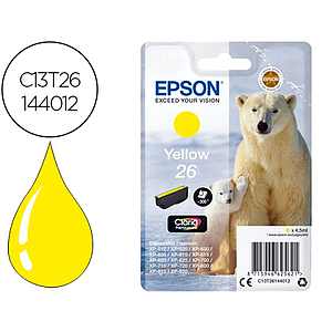 EPSON - cartucho inkjet amarillo CLARIA PREMIUM 26 300P XP-5XX/6XX/7XX/8XX (Ref.C13T26144012)