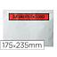Sobre autoadhesivo q-connect portadocumentos 225x165 mm ventana transparente paquete de 100 unidades Sobre autoadhesivo para el envío de documentos. Texto en inglés. Totalmente transparente, sin ventana, con impresión en negro y rojo. Paquete de 100 unidades.