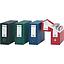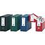 Estuche archivador compacto con tapa para cerrar y tarjeta en el lomo, con doble estuche reforzado y ollao en el lomo.